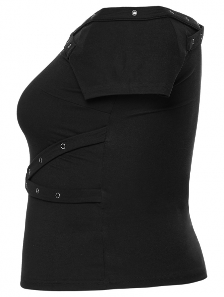 Black Gothic Punk Off-Shoulder Knitted Plus Size T-Shirt for Women