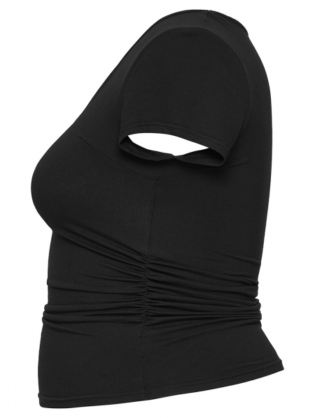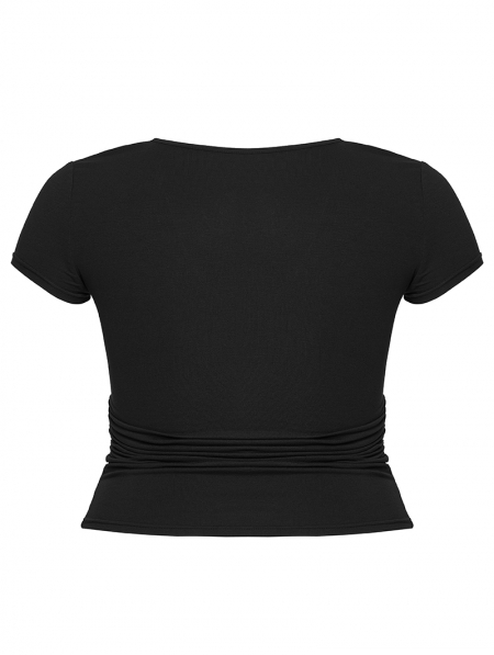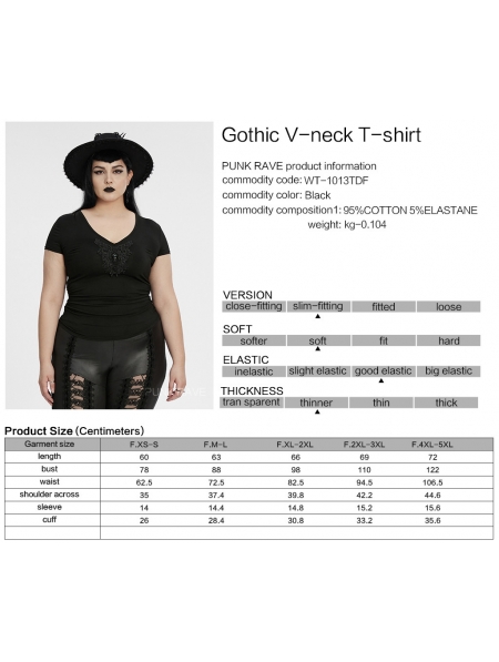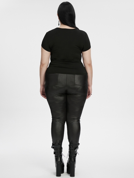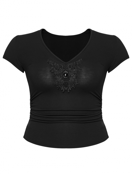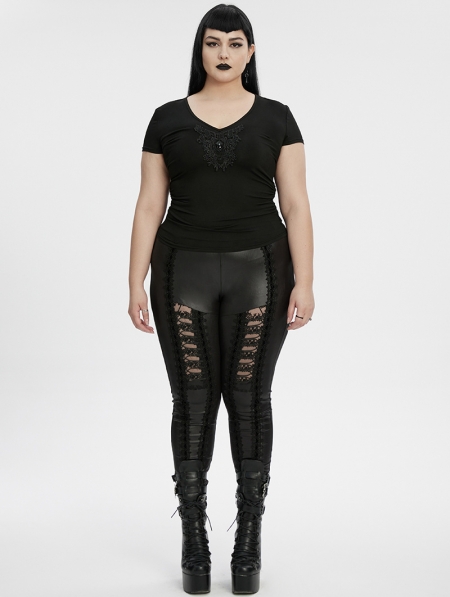 Black Gothic V-Neck Lace Applique Short Sleeve Plus Size T-Shirt for Women