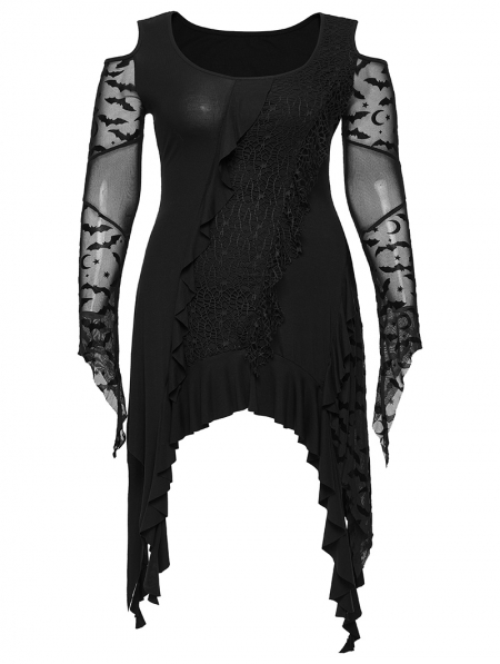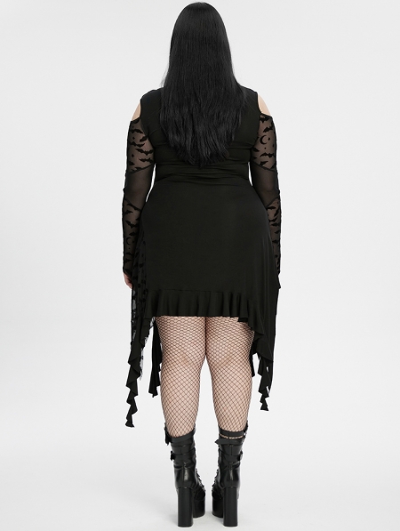 Black Gothic Long Bat Mesh Sleeve Cold Shoulder Plus Size Dress