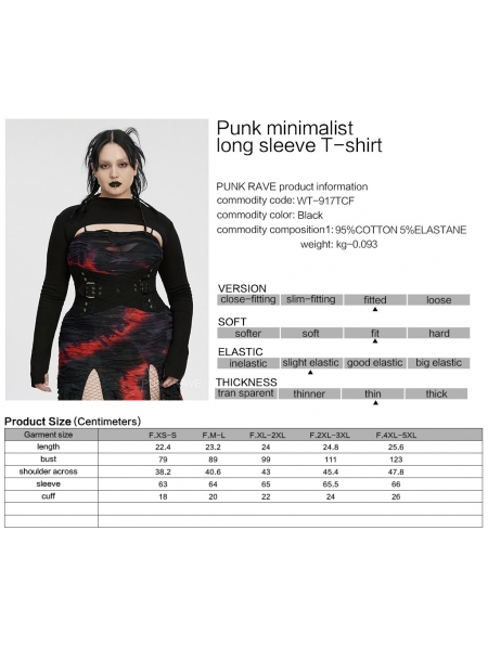 Black Gothic Punk Minimalist Long Sleeve Plus Size T-Shirt for Women