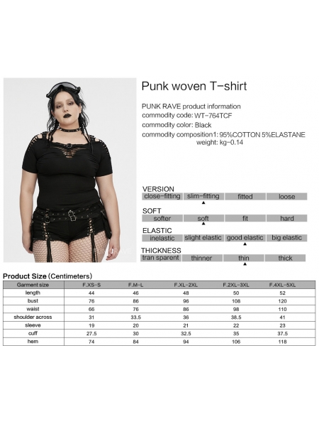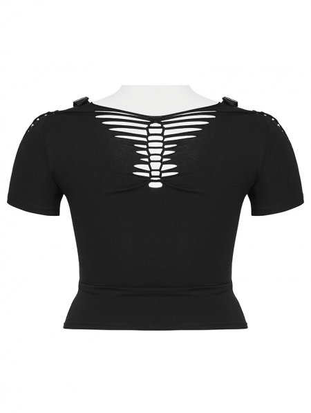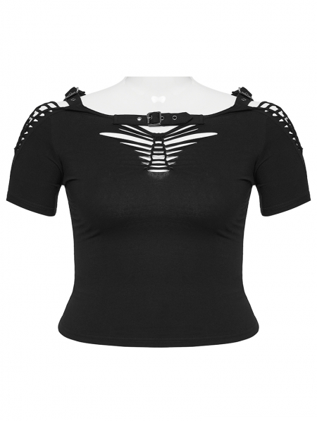 Black Gothic Punk Sexy Hollow-out Short Sleeve Plus Size T-Shirt for Women
