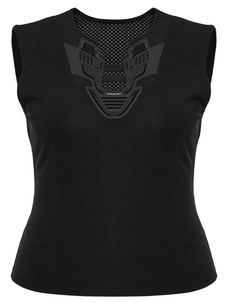 Black Gothic Cyberpunk Sleeveless Plus Size T-Shirt for Women