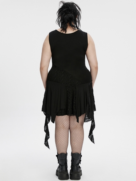 Black Gothic Sleeveless Irregular Hem Plus Size Dress