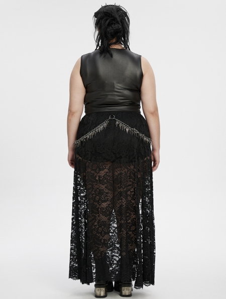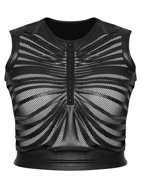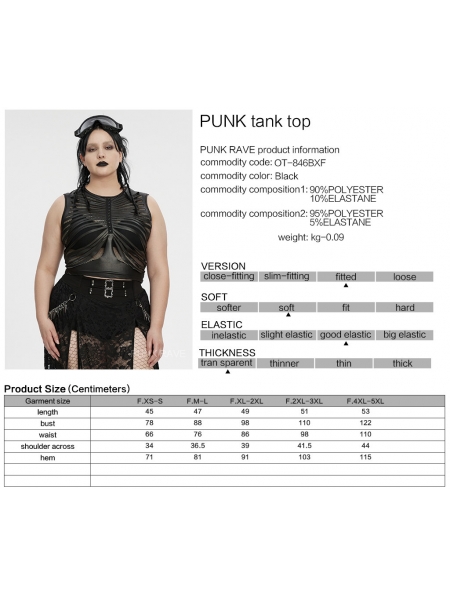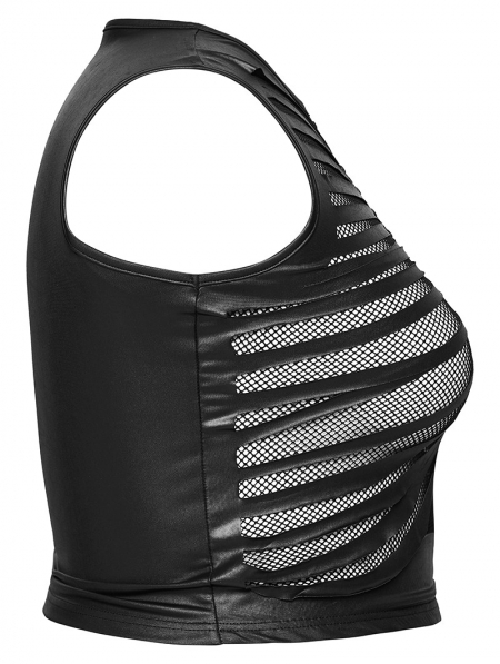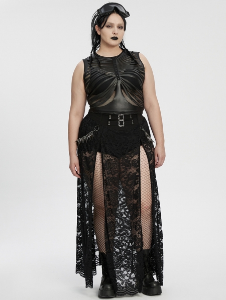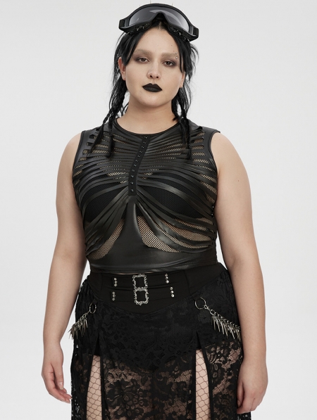 Black Gothic Punk Mesh Perspective Fitted Sleeveless Plus Size Top for Women