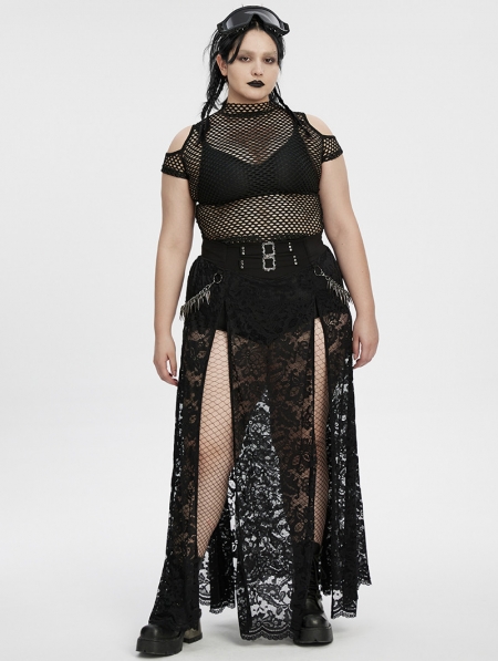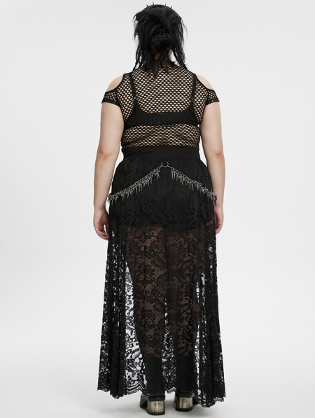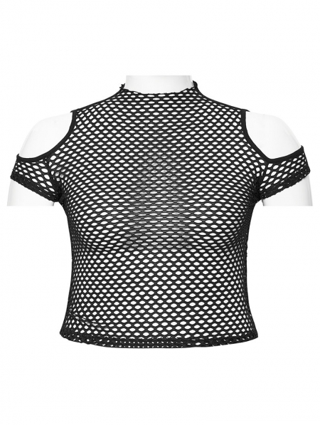 Black Gothic Punk Tie-Dyed Mesh Short Sleeve Plus Size T-Shirt for Women