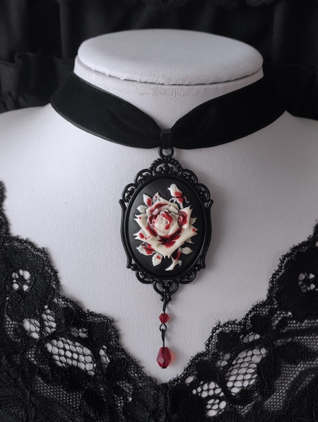 Black Gothic Vintage Bloody Rose Pendant Velvet Choker