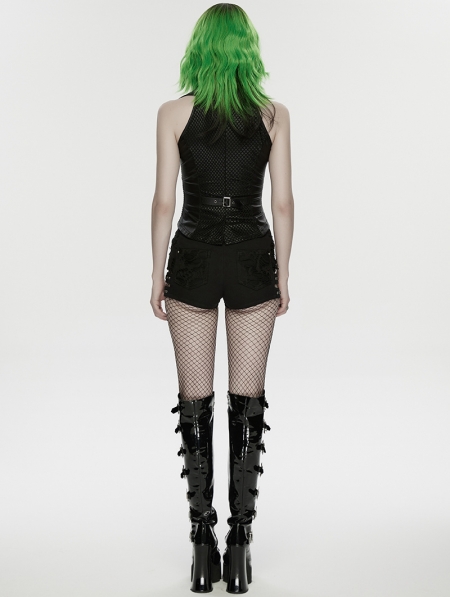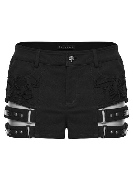 Black Gothic Punk Personality Cutout Shorts for Women