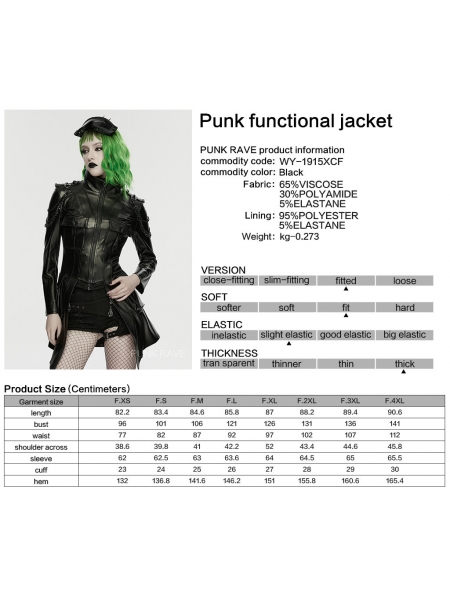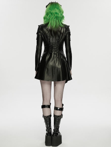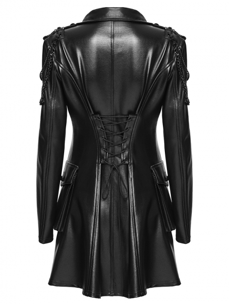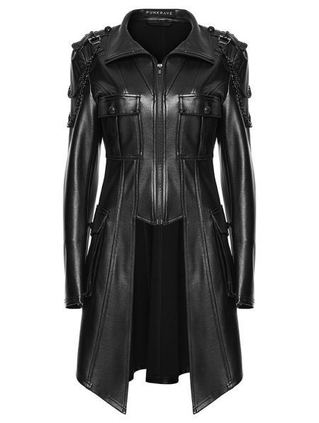 Black Gothic Punk Metal Chain Functional PU Leather Jacket for Women