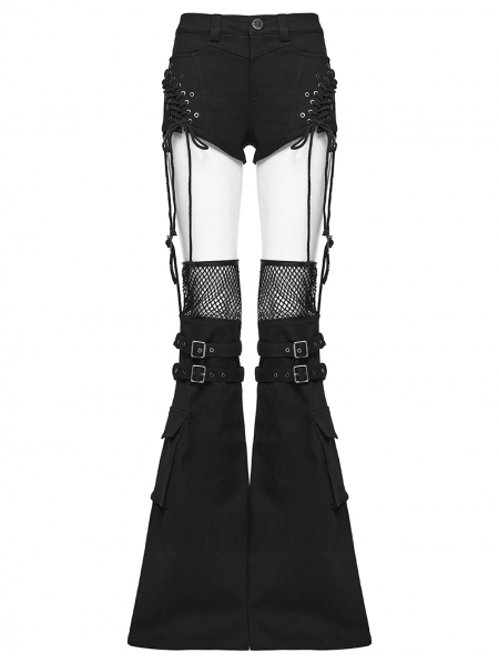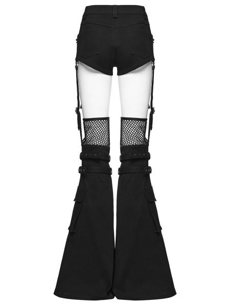 Black Gothic Punk Detachable Flared Pants for Women