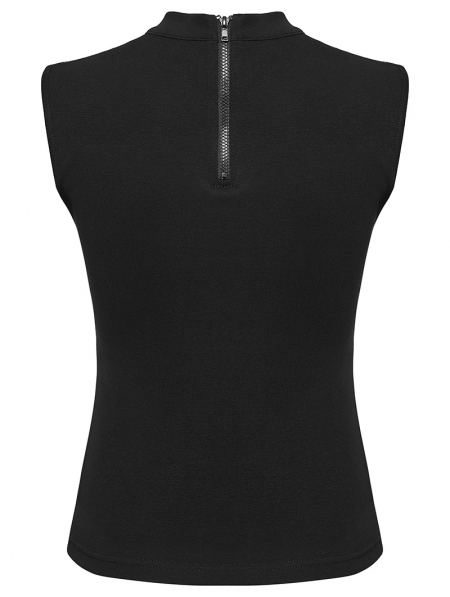 Black Gothic Punk Hollow Out Studded Vest Top for Women