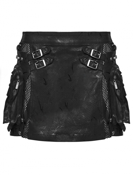 Black Gothic Apocalypse Punk Skirt with Detachable 3D Pocket