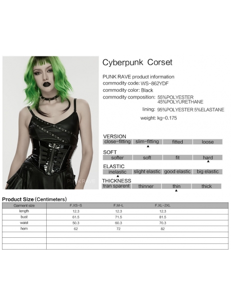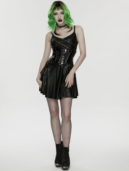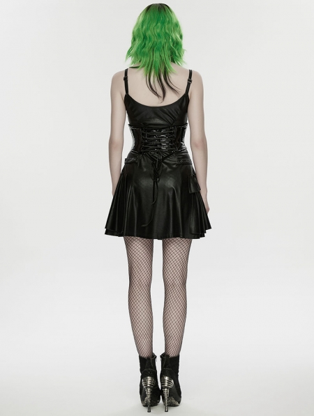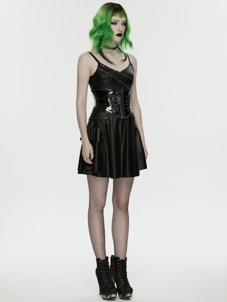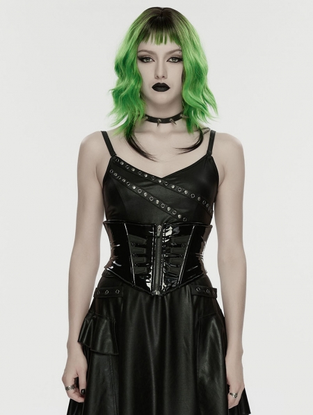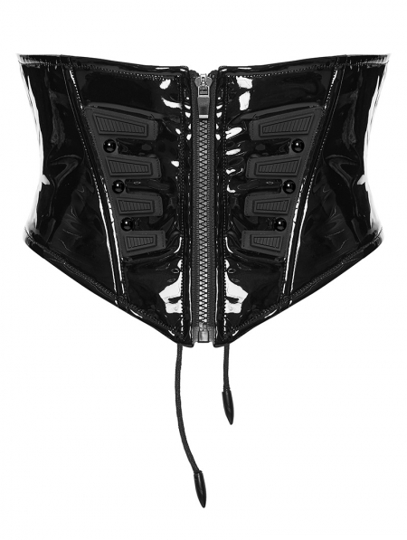 Black Gothic Cyberpunk Gloss Patent Leather Corset Waistband