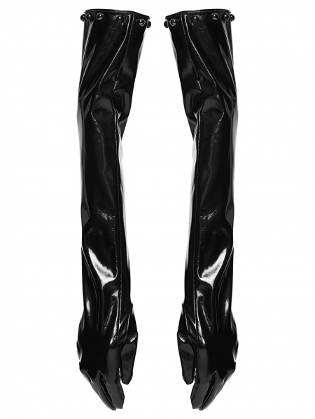 Black Gothic Punk Glossy Patent Leather Gloves