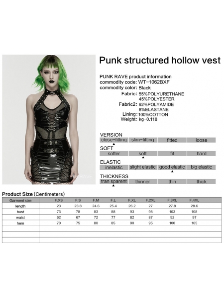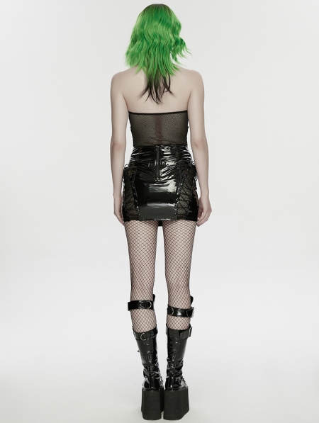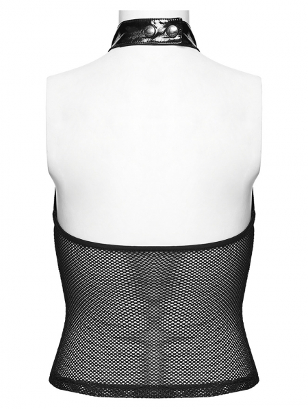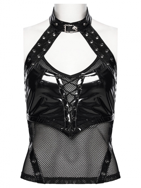 Black Gothic Punk Structured Hollow Vest Top for Women