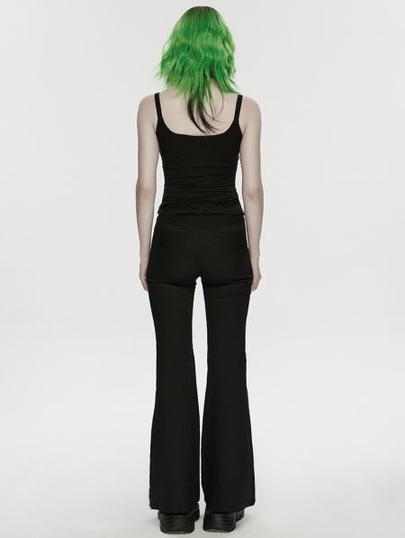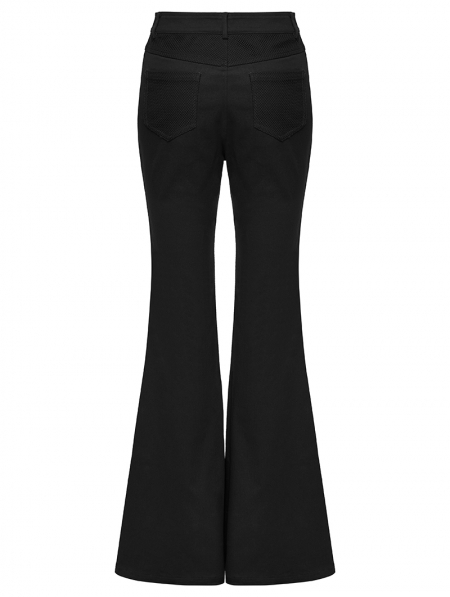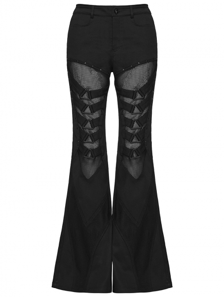 Black Gothic Punk Mesh Spliced Flared Pants for Women