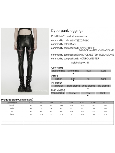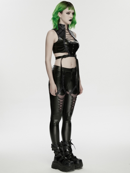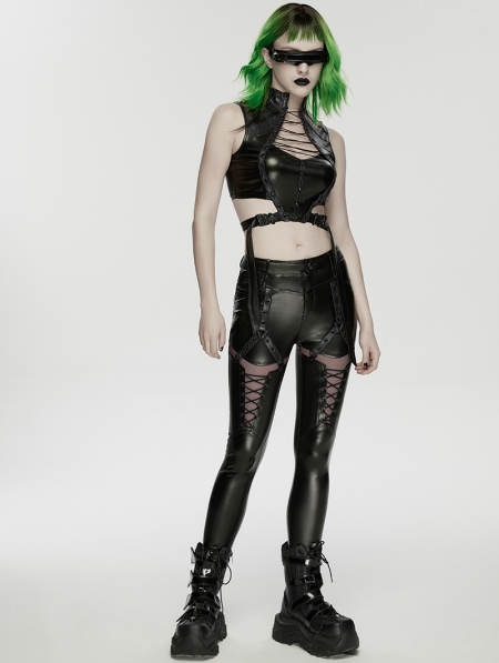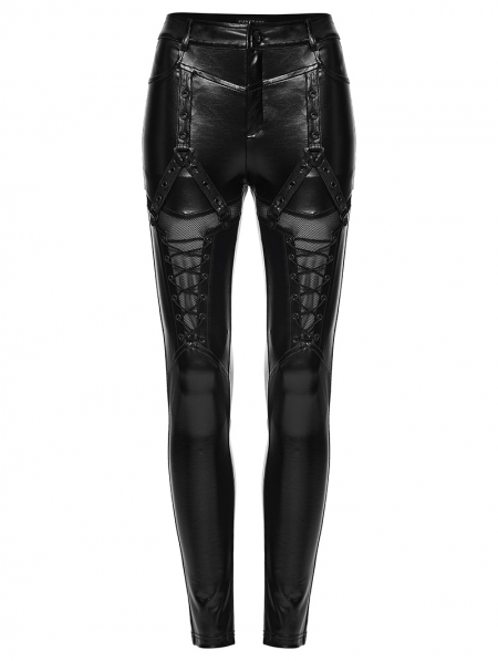 Black Gothic Cyberpunk Mesh Panel Leather Leggings for Women