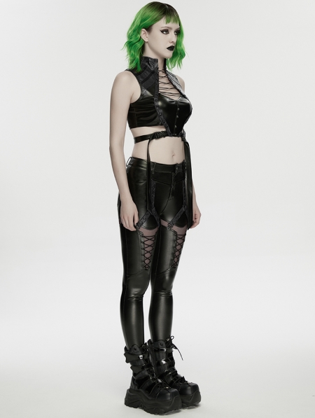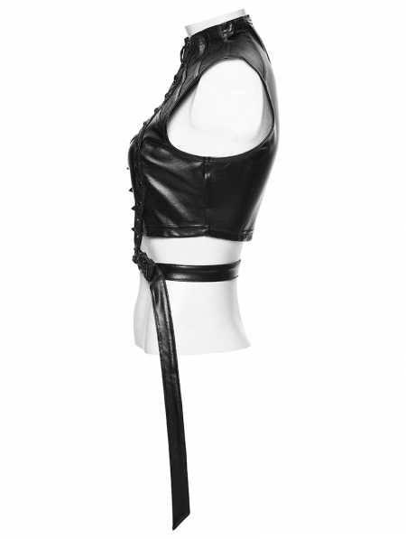 Black Gothic Cyberpunk Buckled Cutout Top for Women