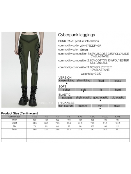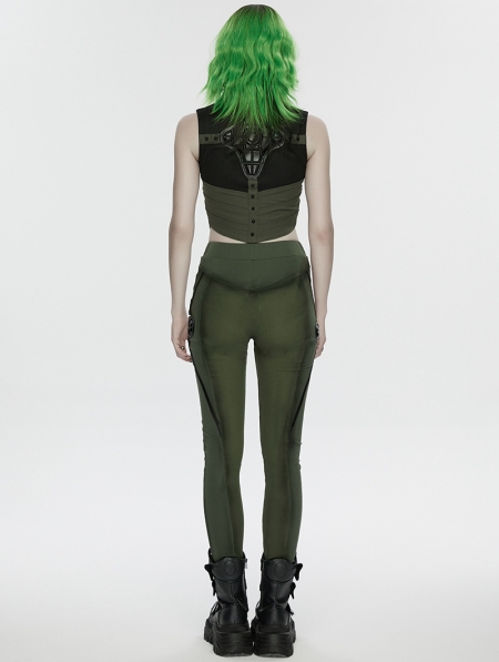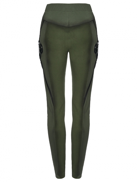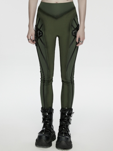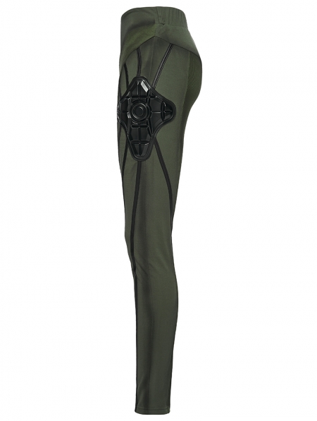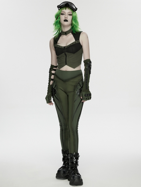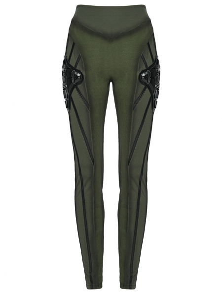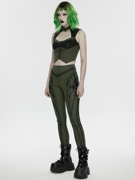 Black and Green Gothic Cyberpunk Leggings for Women