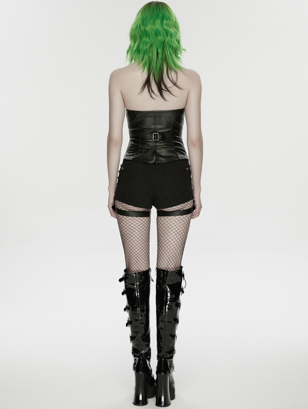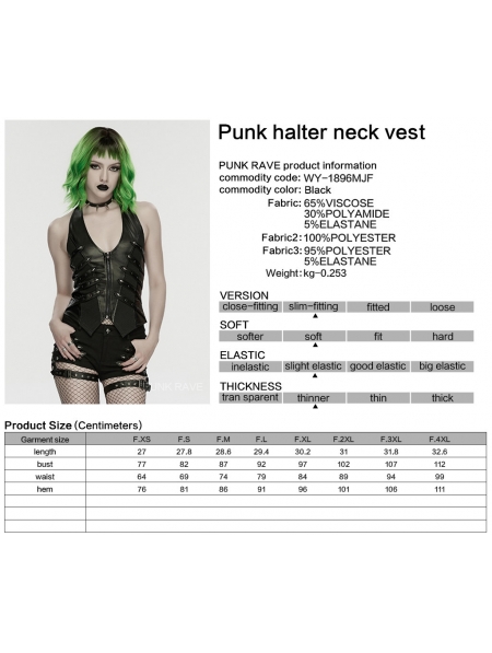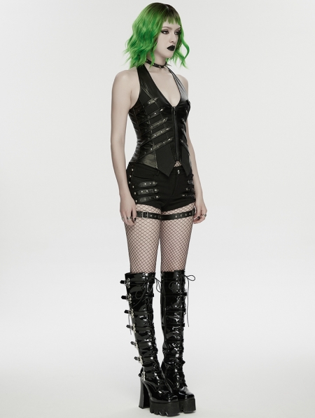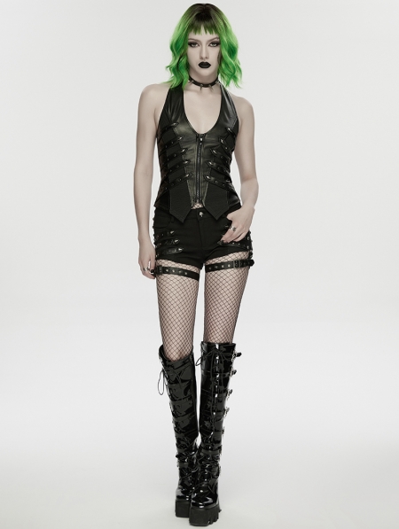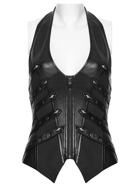 Black Gothic Punk Studded Halter Neck Vest for Women