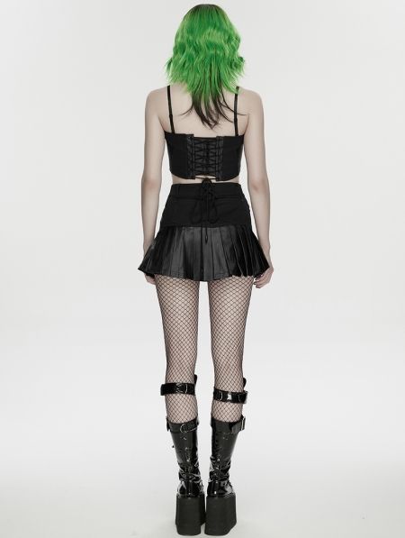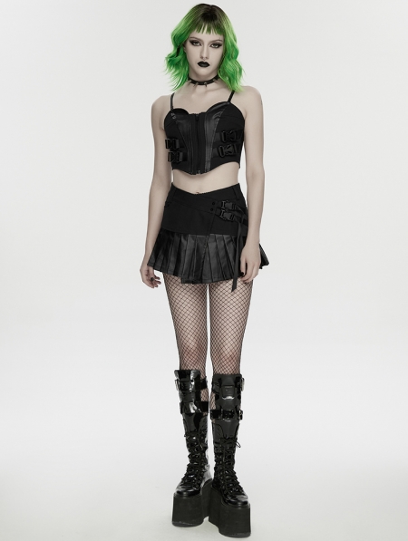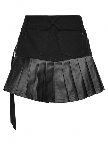 Black Gothic Cyberpunk Asymmetrical One-Piece Pleated Short Skirt