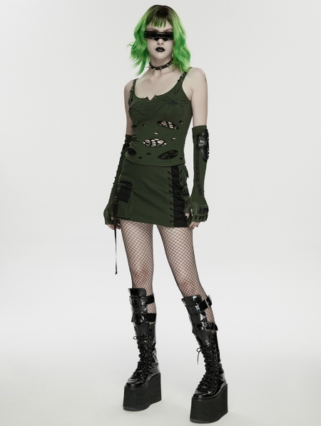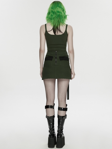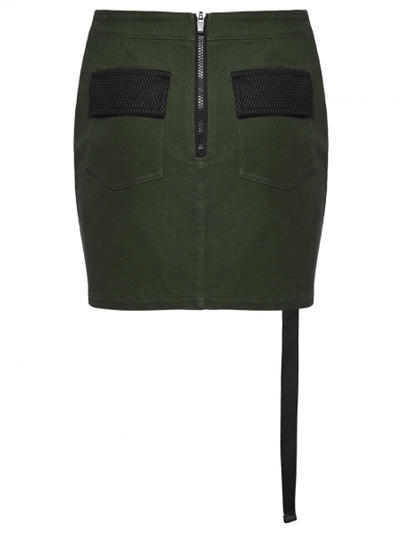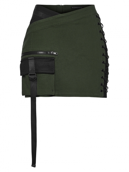 Black and Green Gothic Cyberpunk Asymmetrical Bodycon Short Skirt