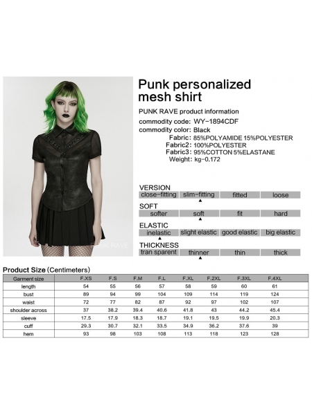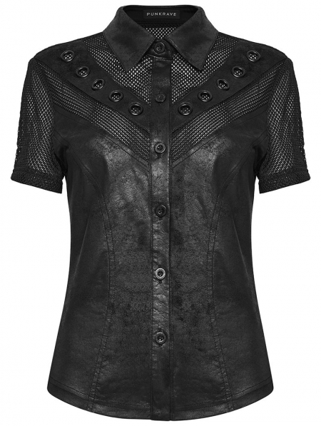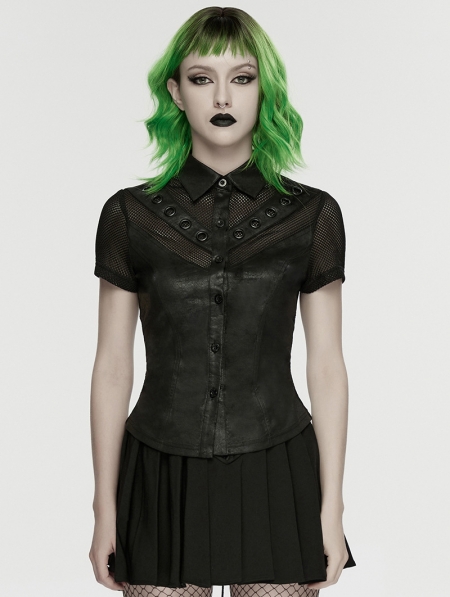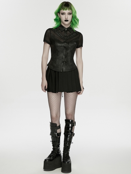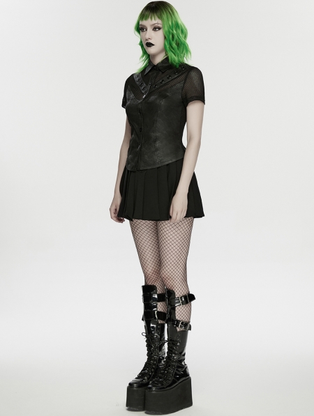 Black Gothic Punk Personality Mesh Spliced Short Sleeve Shirt for Women