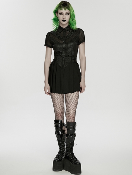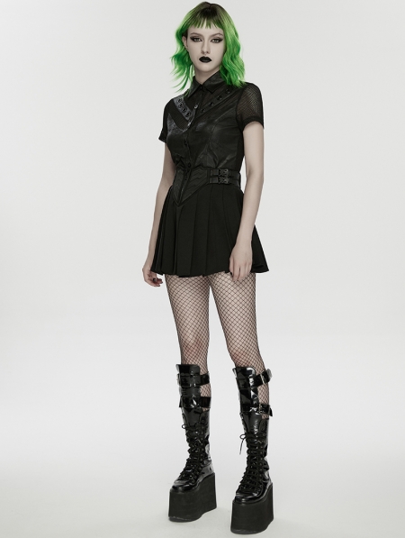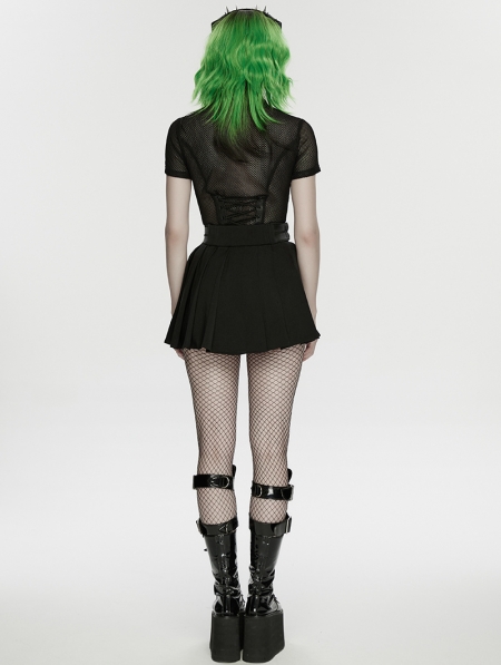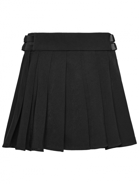 Black Gothic Cyberpunk Zip Front Pleated Short Skirt