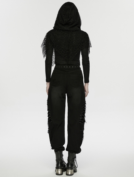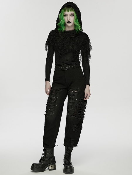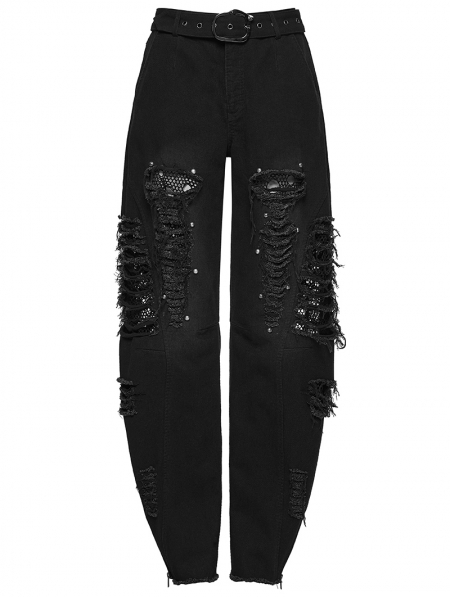 Black Gothic Punk Decadent Denim Pants for Women