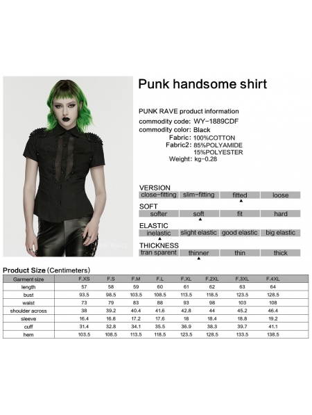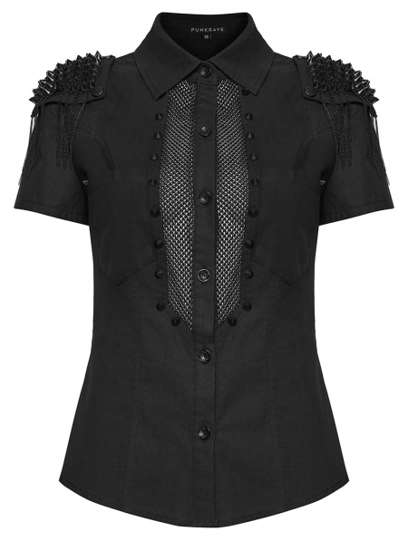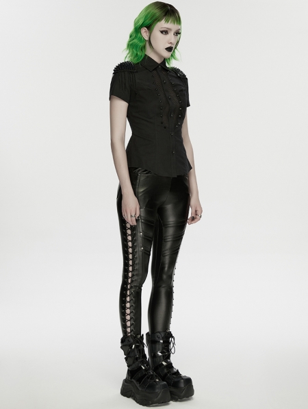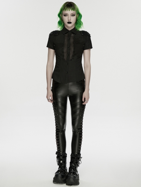 Black Sexy Gothic Punk Handsome Short Sleeve Shirt for Women
