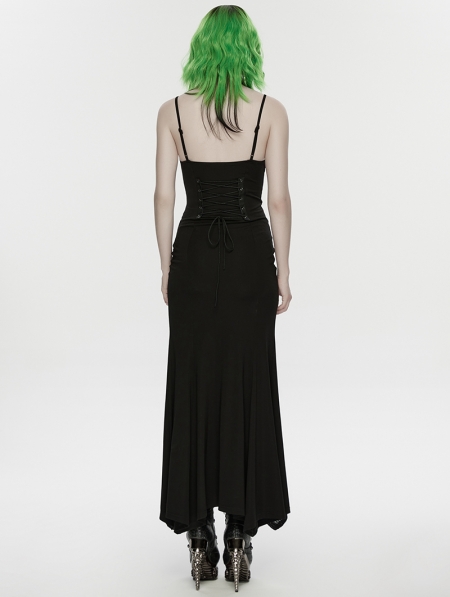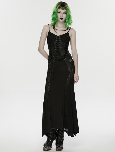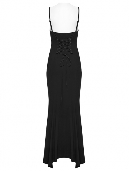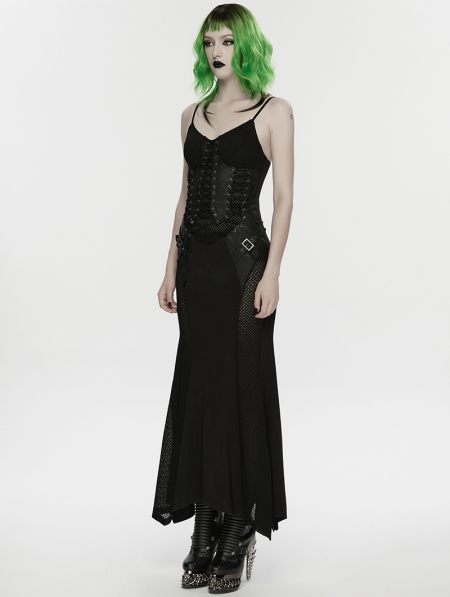 Black Gothic Punk Mesh Slip Fishtail Maxi Dress