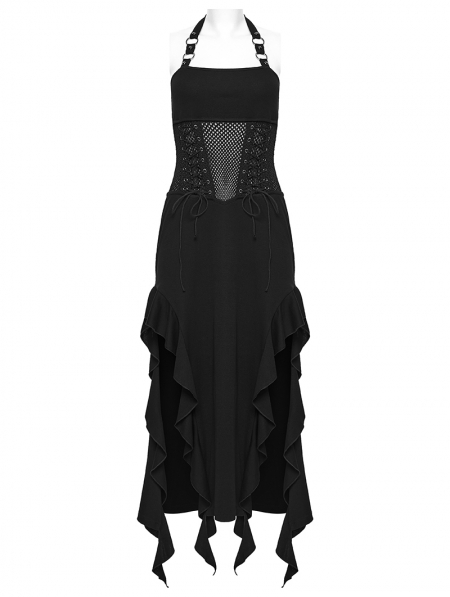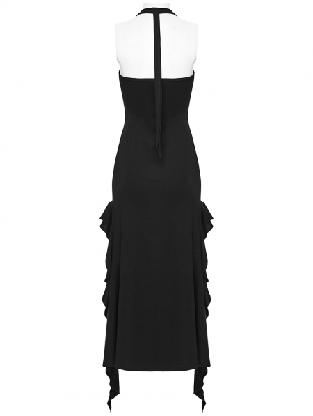 Black Sexy Gothic Punk Halter Irregular Ruffled Dress
