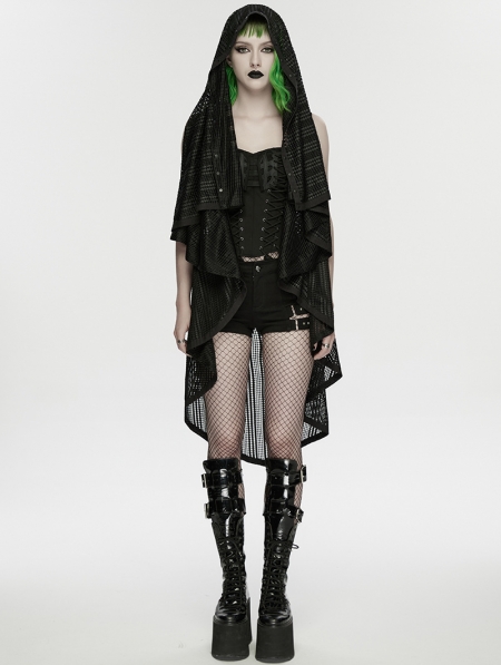 Black Gothic Punk Versatile Hooded Vest for Women