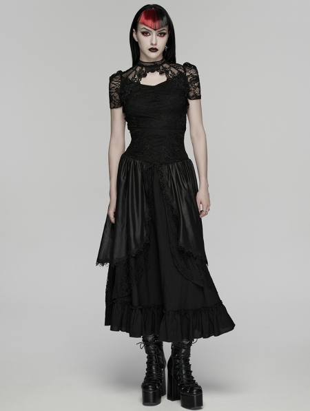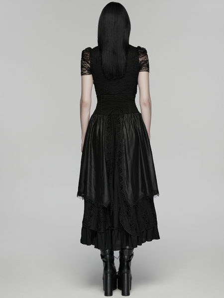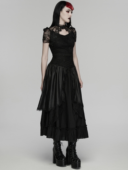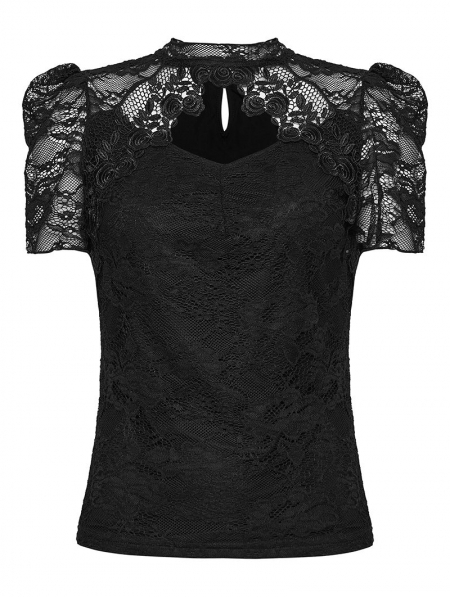 Black Gothic Lace Short Puff Sleeve Shirt for Women