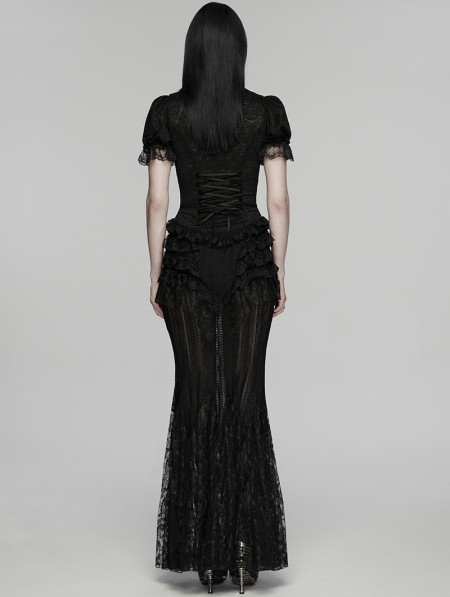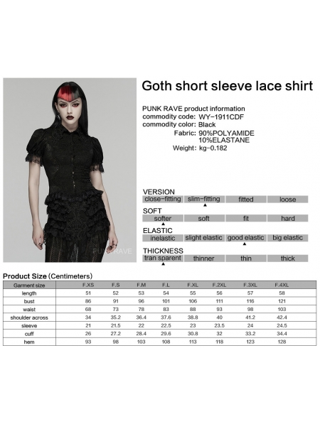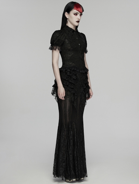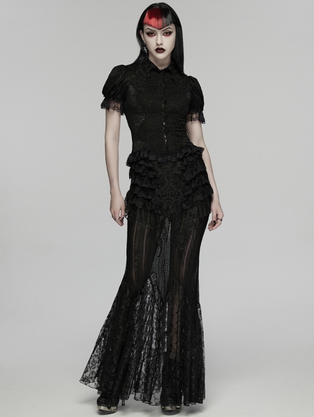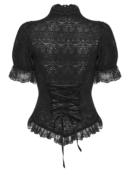 Black Retro Gothic Short Sleeve Lace Shirt for Women
