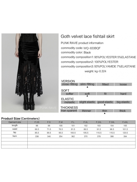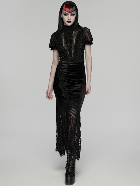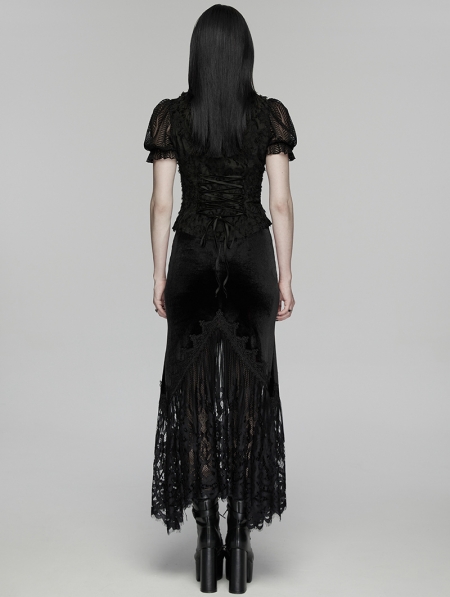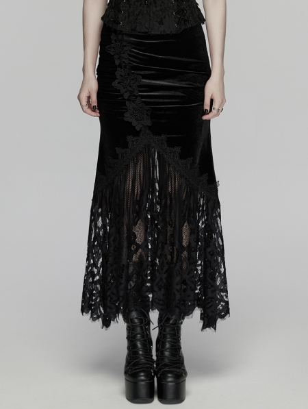 Black Gothic Velvet Lace Ruched Fishtail Skirt