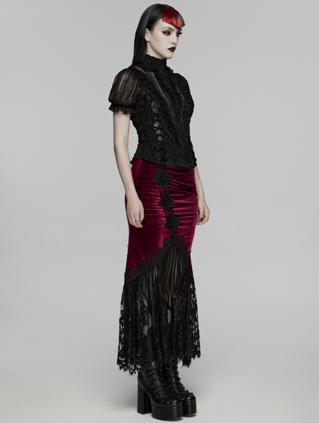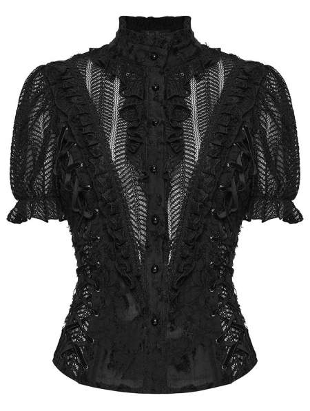 Black Gothic Decadent Sexy Short Puff Sleeve Shirt for Women