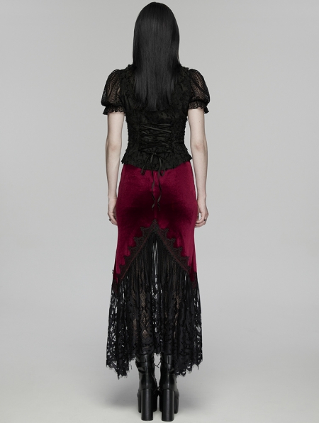 4. Drawstrings with eyelets on both sides, pleated lace adds layers of decadence and creates a gothic dark aura.