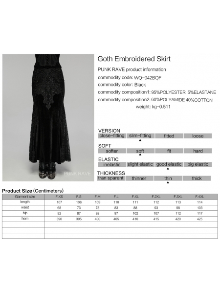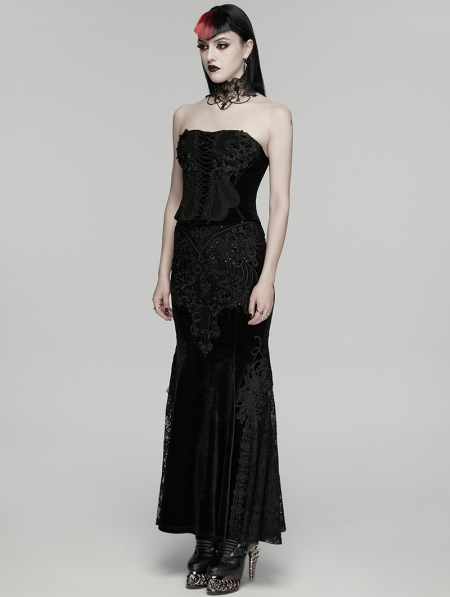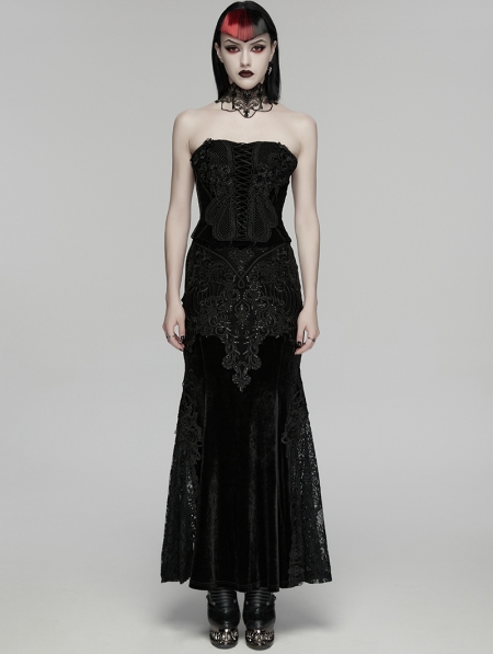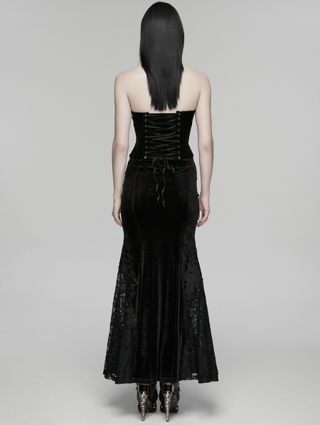 Black Gothic Sequin Embroidered Lace Velvet Fishtail Skirt