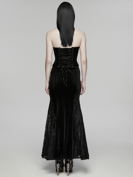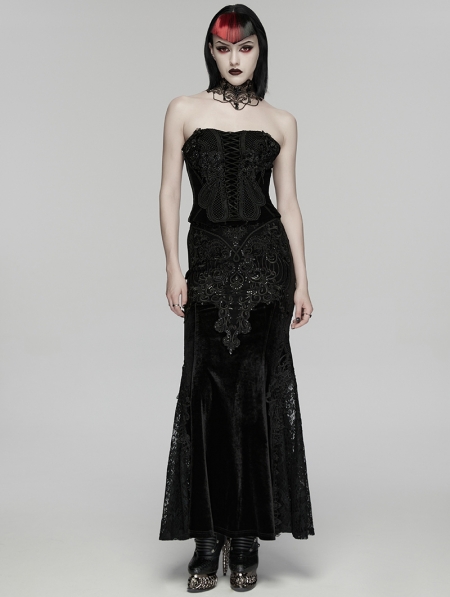 Black Gothic Embroidered Velvet Corset Top for Women