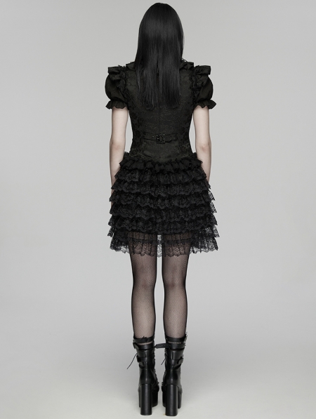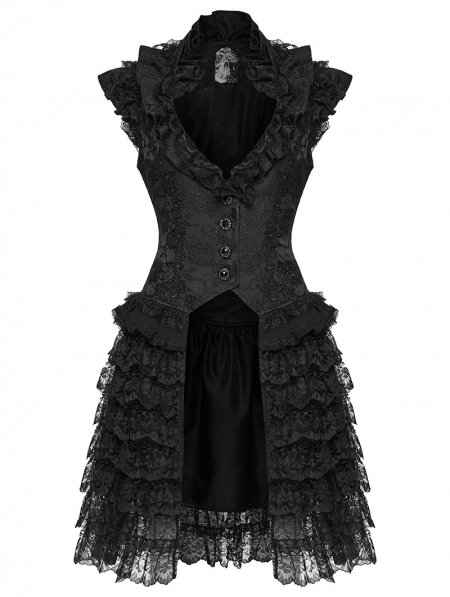 Black Gothic Women's Jacquard Vest with Layered Skirt