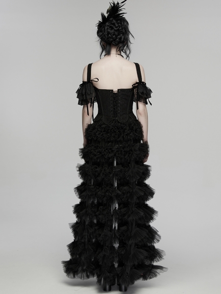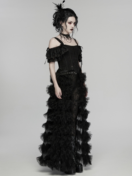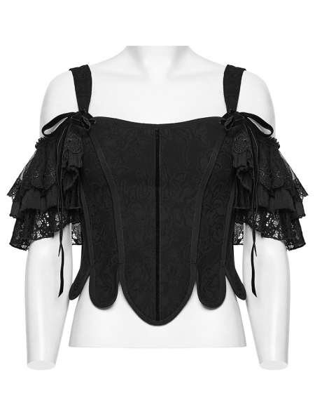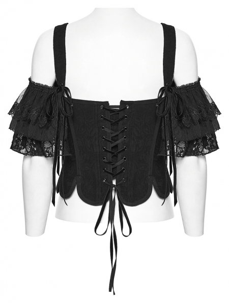 Black Gothic Two-Piece Corset Top with Detachable Sleeves