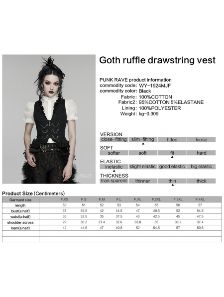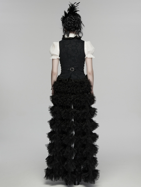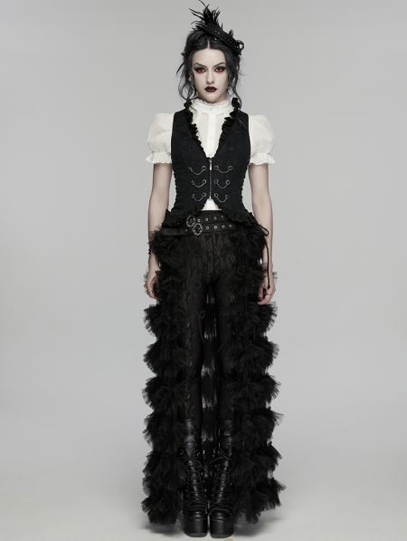 Black Gothic Ruffle V-Neck Drawstring Vest for Women