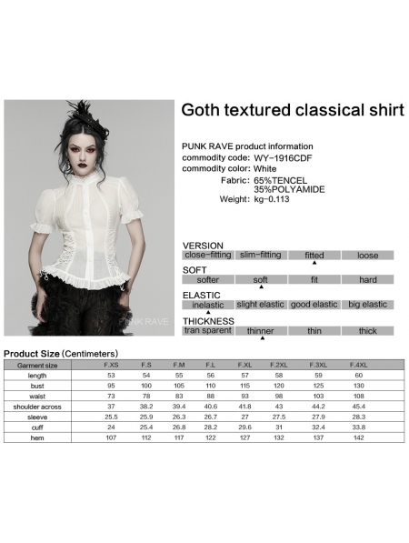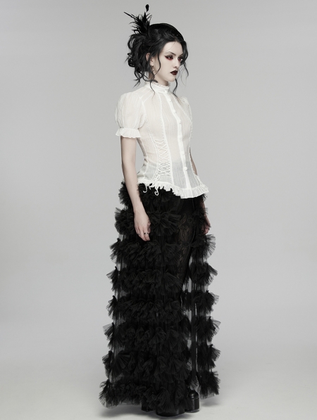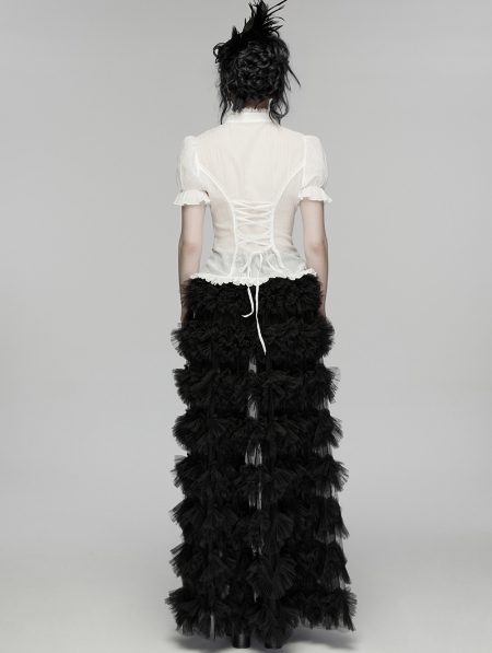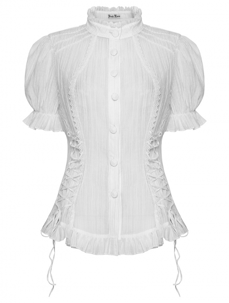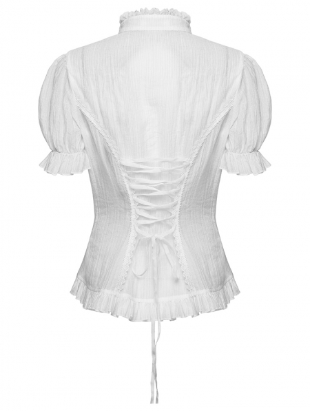 White Gothic Classical Ruffle Short Sleeve Shirt for Women
