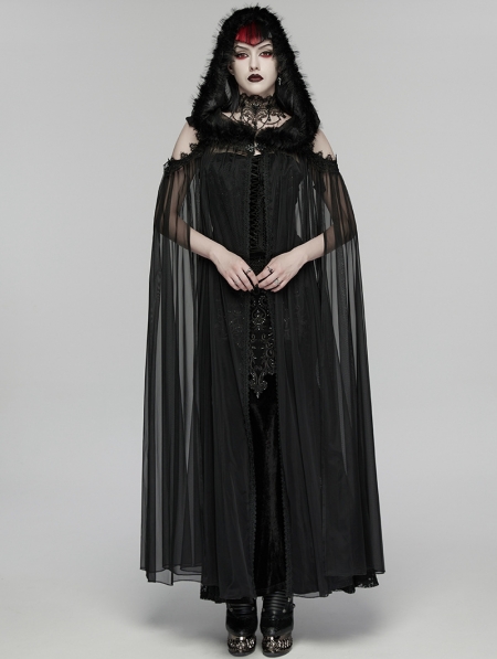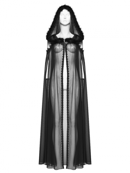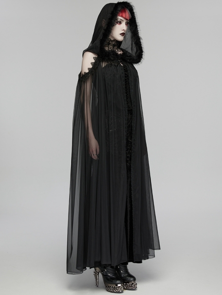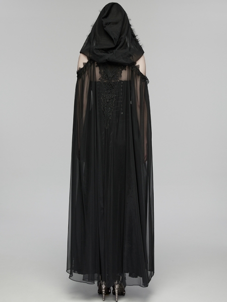 Black Gothic Perspective Mesh Magic Hooded Long Cape for Women