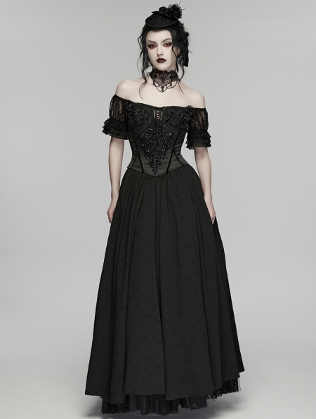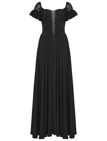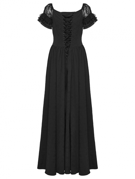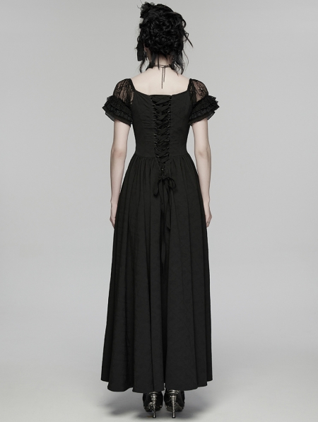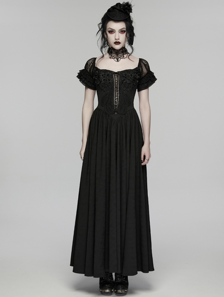 Black Gothic Gorgeous Embroidery Lace Short Sleeve Party Dress