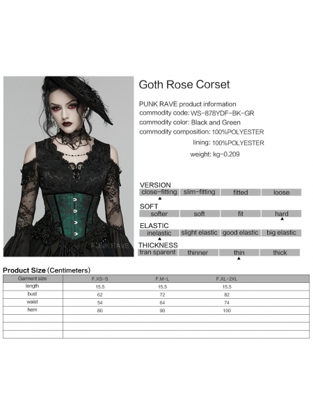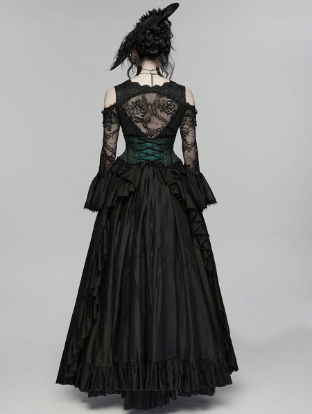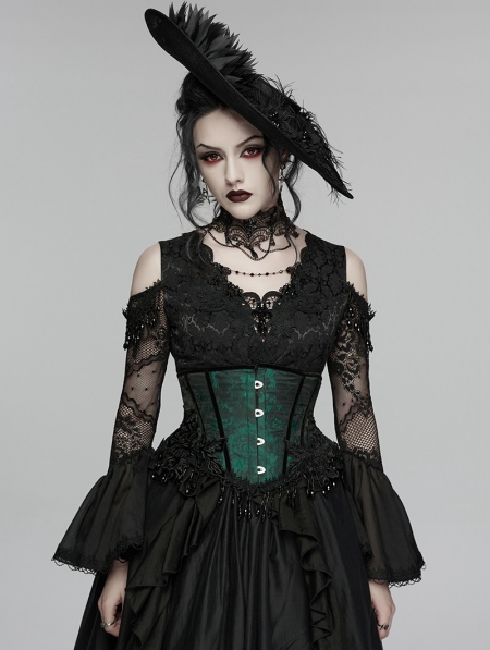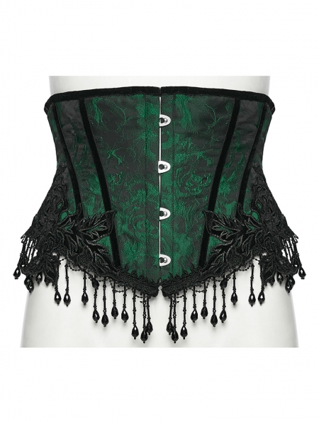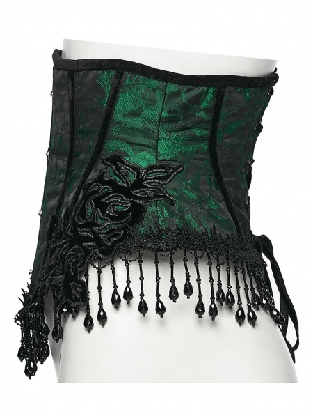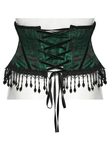 Black and Green Gothic Rose Bead Tassel Corset Waistband
