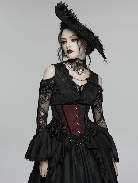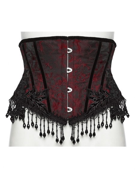 Black and Red Gothic Rose Bead Tassel Corset Waistband