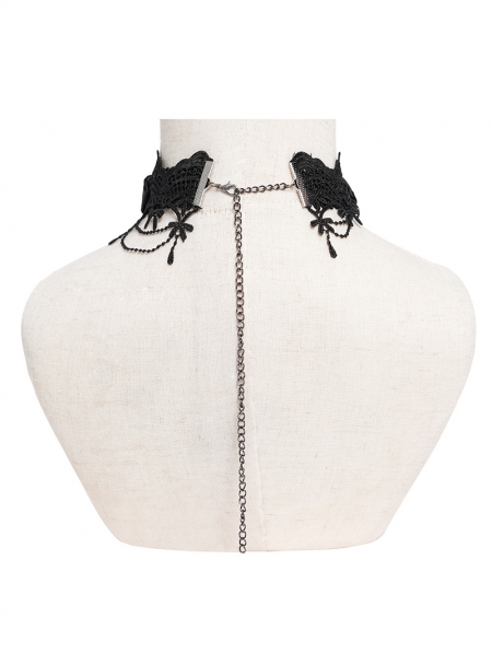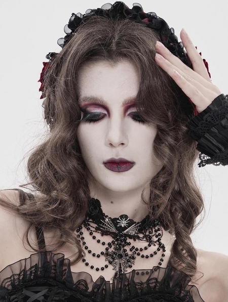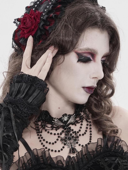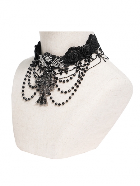 Black Gothic Rose Cross Beaded Chain Choker Necklace