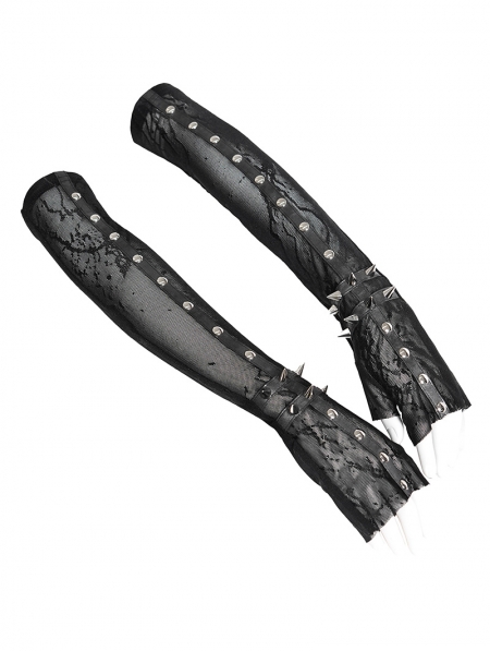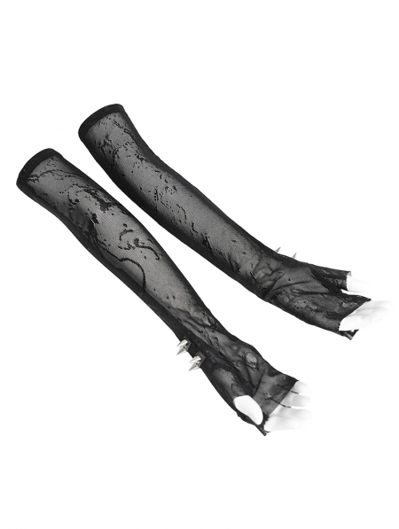 Black Gothic Punk Spike Studded Mesh Long Gloves
