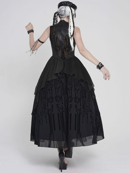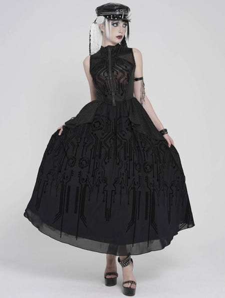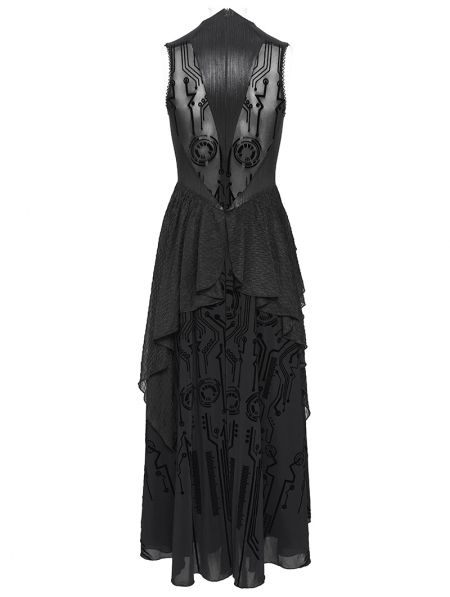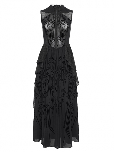 Black Gothic Cyberpunk Pattern Sleeveless Maxi Dress